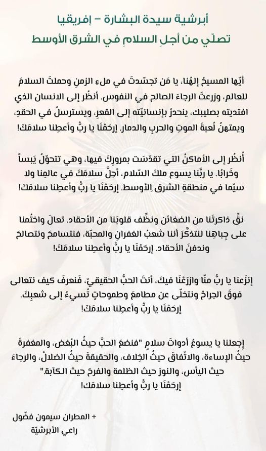 إفريقيا تصلّي من أجل السلام في الشرق الاوسط