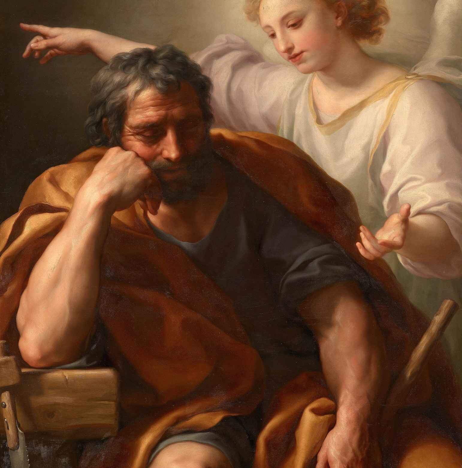 Le rêve de saint Joseph (1773-1774)par Anton Raphael Mengs (1728, Aussig - 1779, Rome). Huile sur toile. 114 x 86 cm. Kunsthistorisches Museum Wien, Gemäldegalerie, Vienne. Dans l’Évangile de Saint Matthieu, l’apôtre raconte : «Après le départ des mages, voici que...