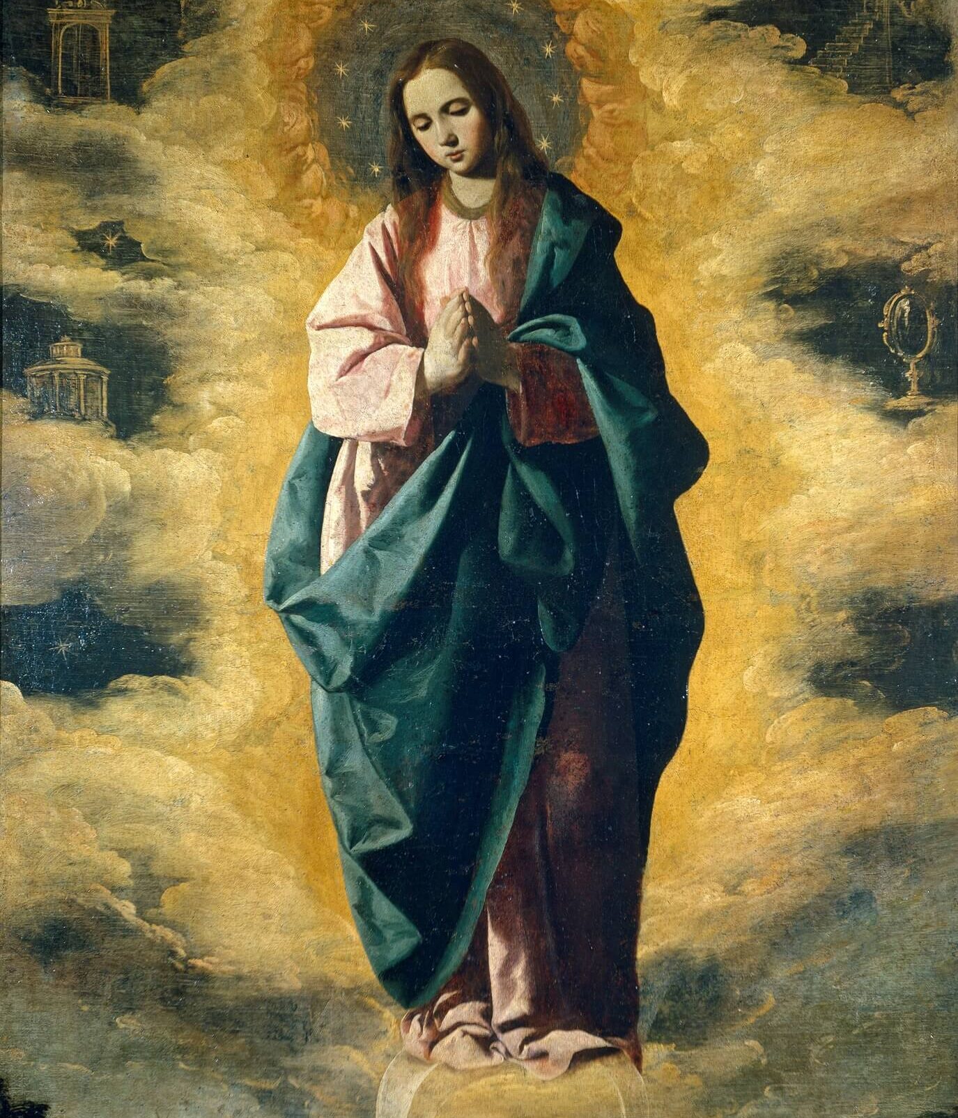 Francisco de Zurbarán (1598, Fuente de Cantos - 1664, Madrid). Huile sur toile. 128 x 89 cm. Musée national du Prado, Madrid. Le culte de la Vierge Immaculée est l'un des traits identitaires de l'Espagne du XVIIe siècle, notamment à la suite d'une violente dispute...