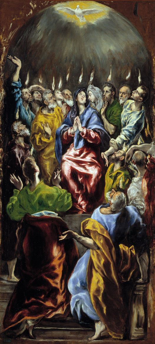 Cette œuvre représente le moment où le Saint-Esprit, sous forme de flammes, se repose sur la Vierge et les Apôtres le jour de la Pentecôte à Jérusalem, comme le raconte le livre des Actes des Apôtres (2 , 1-5).