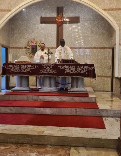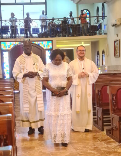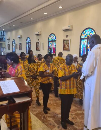 Messe d’action de grâce en l’honneur de Mme YAPO Viviane directrice de l’Ecole Privée Catholique de la Mission Libanaise pour son départ en retraite; célébrée par Père François-Xavier MANDO et Mgr Charbel Daniel BOU HAYDAR suivie par une réception à la salle de l’église.